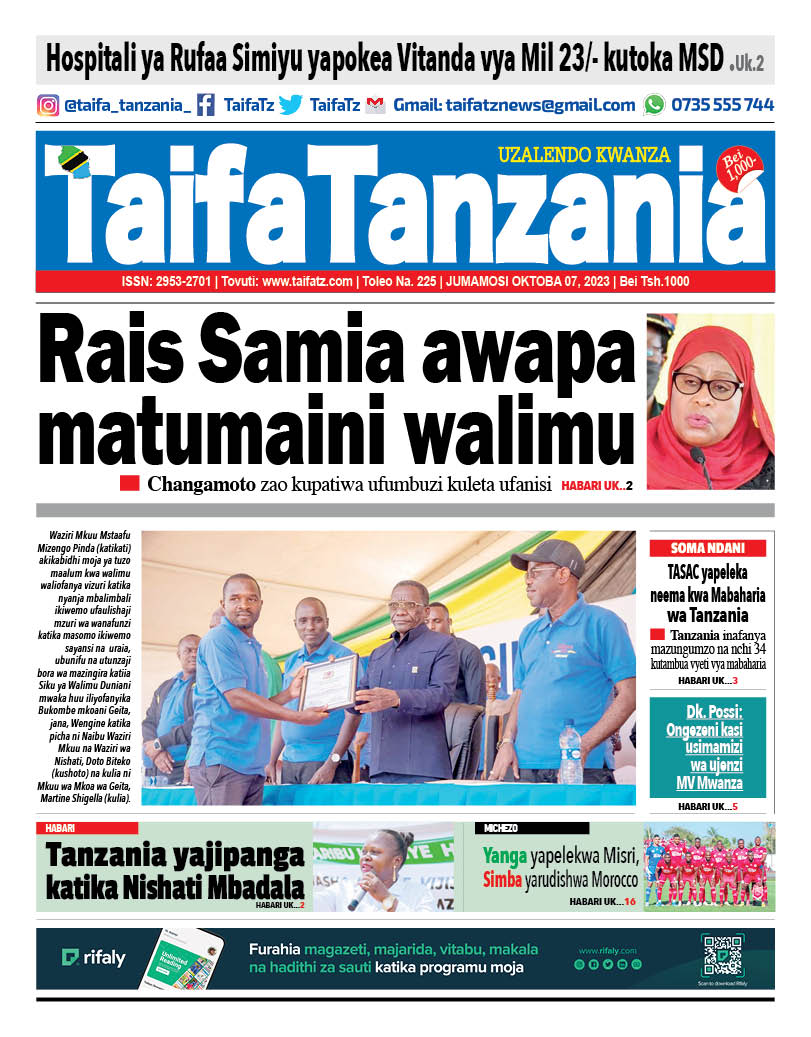 MagazetiPITIA VICHWA VYA HABARI KATIKA MAGAZETI YA LEO OKTOBA 7,2023 Last updated: 2023/10/07 at 3:26 AM Alex Sonna 3 years ago Share SHARE Alex Sonna October 7, 2023 October 7, 2023 Share this Article Facebook Twitter Email Print Previous Article MAADHIMISHO YA WIKI YA HUDUMA KWA WATEJA: PSSSF YAGAWA MICHE KWA WATEJA WAKE MBEYA Next Article MAHAFALI YA PILI SHULE YA AWALI NA MSINGI BECO YAFANA