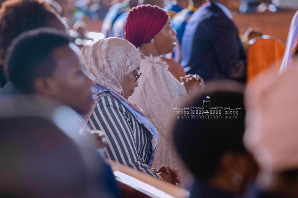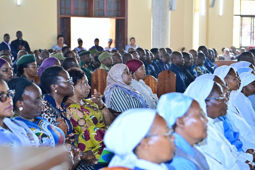 Rais wa Jamhuri ya Muungano wa Tanzania Mhe. Samia Suluhu Hassan akiwa pamoja na Viongozi mbalimbali pamoja na Waumini wa Kanisa Katoliki Parokia ya Roho Mtakatifu wakati wa Misa Maalum ya Kumbukizi ya kumuombea Baba wa Taifa Hayati Mwalimu Julius Kambarage Nyerere iliyofanyika Babati Mkoani Manyara tarehe 14 Oktoba, 2023.