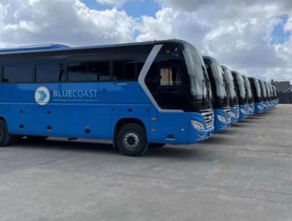 Mabasi ya kampuni ya Blue Coast yanayotumika kusafirisha wafanyakazi na wakandarasi wa GGML.