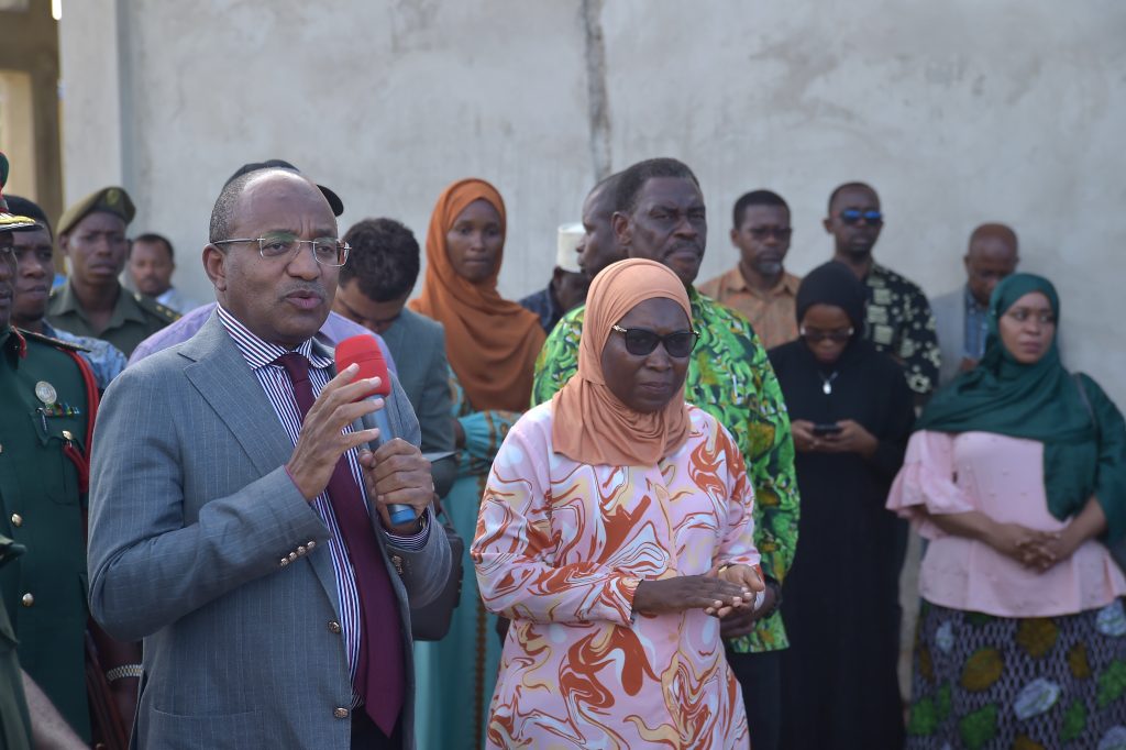 RAIS wa Zanzibar na Mwenyekiti wa Baraza la Mapinduzi Mhe.Dk.Hussein Ali Mwinyi akitembelea Mradi wa Ujenzi wa Kiwanda cha Kusarifu Dagaa Kama “Anchovy Processing Facilities and Livelihood Village at Kama”,akiwa katika ziara yake kukagua mradi huo unaojengwa katika eneo la Kama na (kushoto kwa Rais) Waziri wa Uchumi wa Buluu na Uvuvi Zanzibar Mhe. Suleiman Masoud Makame,Mkuu wa Wilaya ya Magharibi “A” Unguja Mhe. Suzan Kunambi.(Picha na Ikulu).