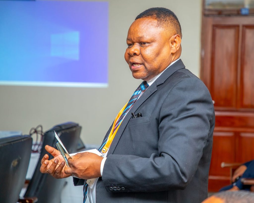 Kamishna wa Umeme na Nishati Mbadala, Mhandisi Innocent Luoga akiwasilisha Mada kwa Wajumbe wa Kamati ya Kudumu ya Bunge ya Nishati na Madini wakati Semina kwa wabunge hao kuhusu Mkataba wa Wakala wa Kimataifa wa Nishati Jadidifu (IRENA), Tarehe 30 Oktoba 2023, Bungeni Dodoma.