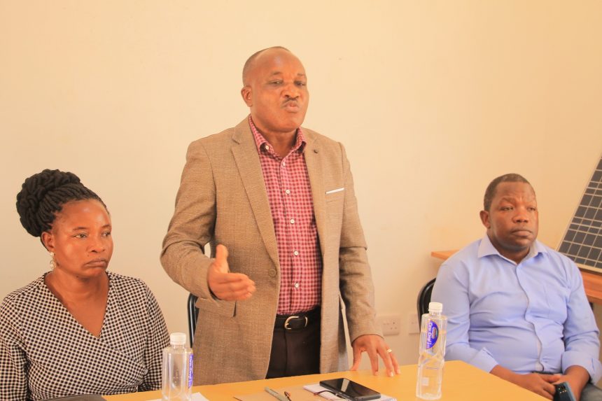 Mkurugenzi wa Mamlaka ya Elimu na Mafunzo ya Ufundi Stadi (VETA) Kanda ya Kati, John Mwanja, akizungumza Oktoba 27, 2023 na wahitimu wa mafunzo ya Nishati ya Umeme Jua yaliyoandaliwa na VETA kwa kushirikiana na Chuo cha Ufundi Arusha (ATC). Kulia ni Mkufunzi wa mafunzo hayo kutoka ATC, Daniel Ngwenya na kushoto ni Kaimu Mkuu wa Chuo cha VETA Mkoa wa Singida, , Alphonsina James.