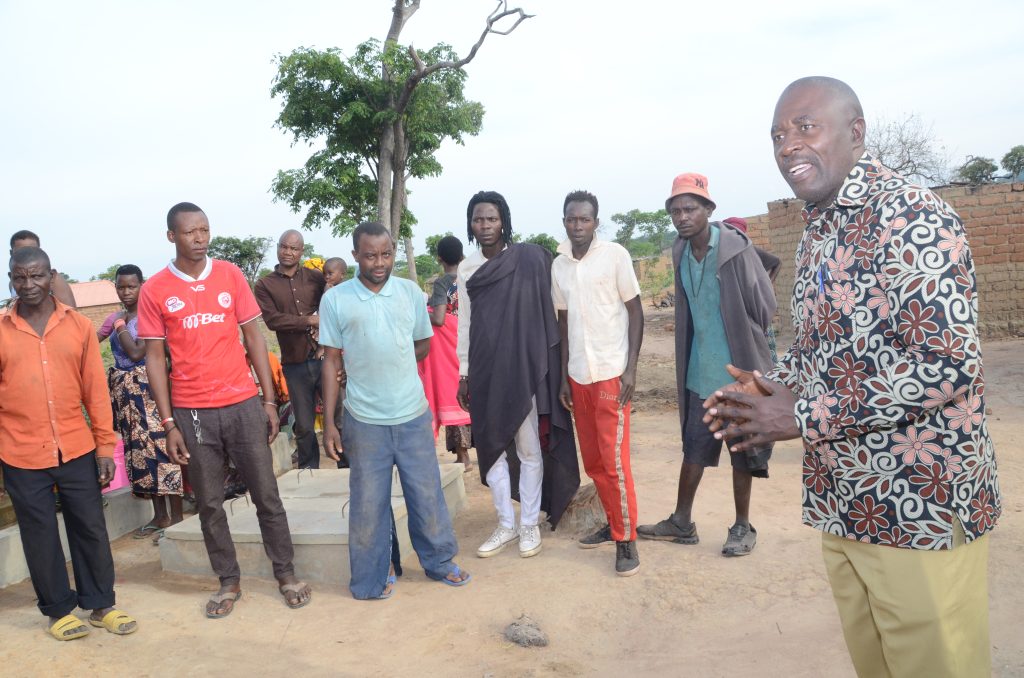 Baadhi ya wakazi wa kitongoji cha Kawambwe kata ya Majalila wilaya ya Tanganyika wakimsikiliza mkuu wa wilaya hiyo Onesmo Busweru kulia, baada ya kukagua utekelezaji wa mradi wa maji Majalila ambapo amewataka wakazi hao kuhakikisha wanatunza vyanzo na kulinda miradi ya maji ili iweze kuwa endelevu na kudumu kwa muda mrefu.