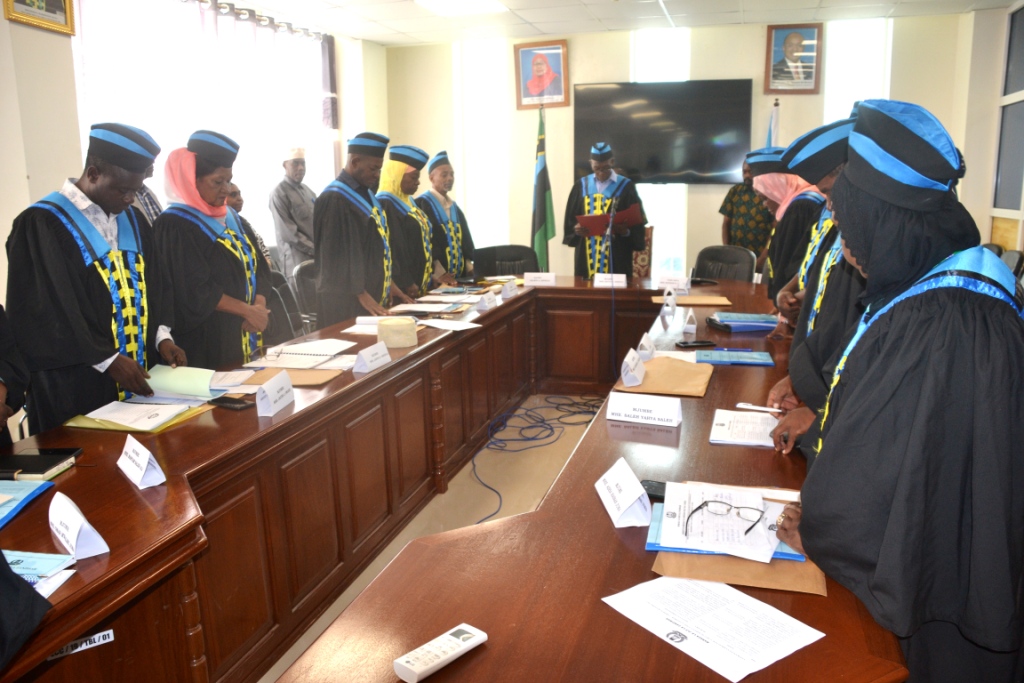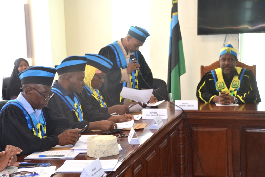 Wajumbe wa Kikao cha 12 cha Madiwani wakisikiliza Dua ya Ufunguzi wa Kikao hicho Kilicho pokea na Kujadili Taarifa za Utekelezaji wa Kazi za Ofisi ya Baraza la Jiji na Kamati za Kudumu za Baraza la Jiji la Zanzibar na Masuala mengine mbalimbali ,Kikao kilicho fanyika katika Ukumbi wa Ofisi ya Mstahiki Meya wa Jiji la Zanzibar Michenzani Mall.