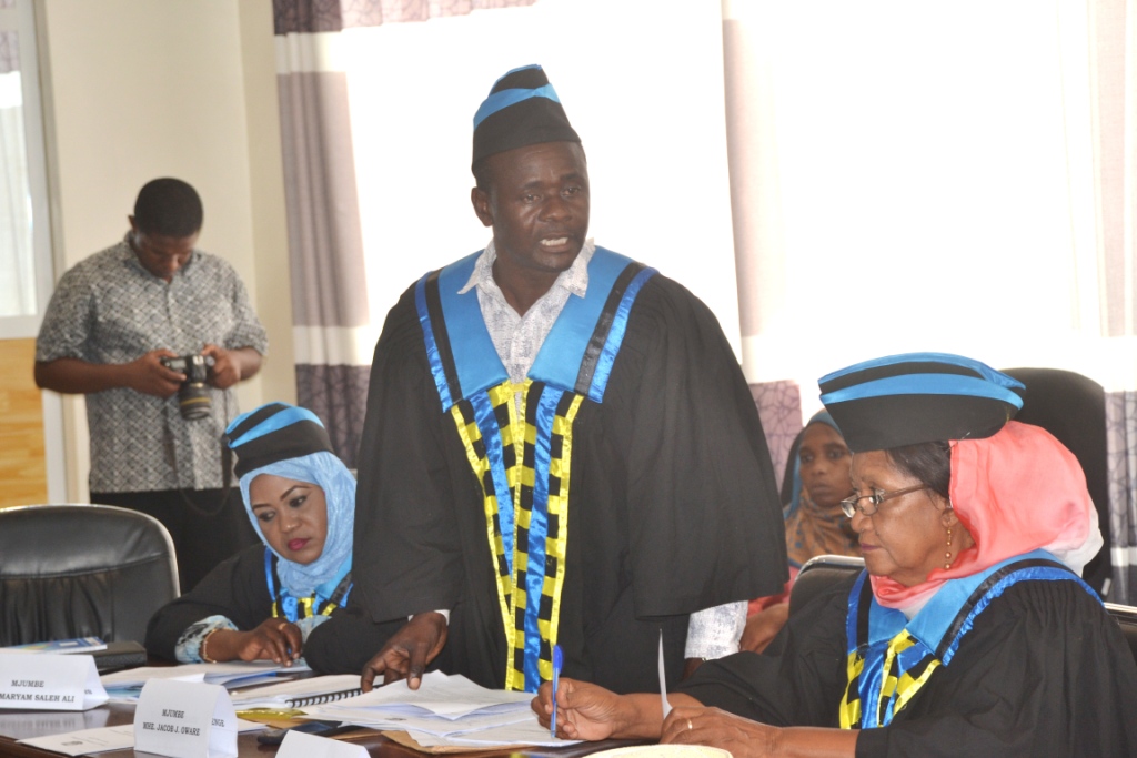 Mjumbe wa Kikao cha Madiwani Jacob Oware akiuliza maswali katika kikao cha 12 cha Madiwani ambacho kilipokea na Kujadili Taarifa za Utekelezaji wa Kazi za Ofisi ya Baraza la Jiji na Kamati za Kudumu za Baraza la Jiji la Zanzibar na Masuala mengine mbalimbali ,Kikao kilicho fanyika katika Ukumbi wa Ofisi ya Mstahiki Meya wa Jiji la Zanzibar Michenzani Mall.