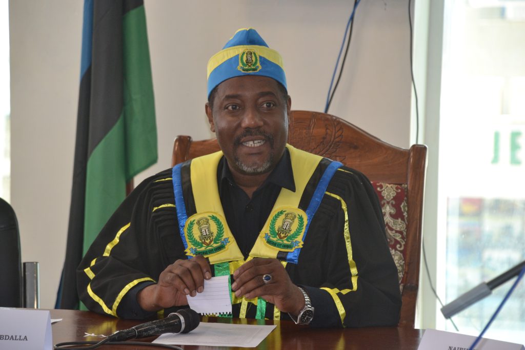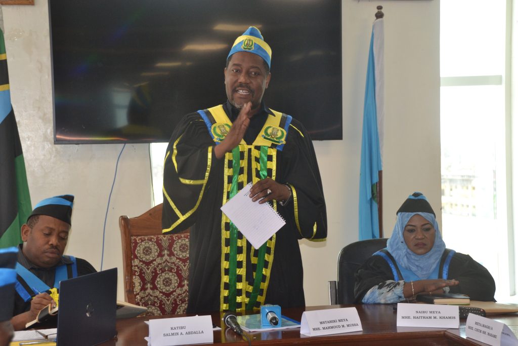 Mstahiki Meya wa Jiji La Zanzibar Mahamed Mahmoud akizungumza katika kikao cha 12 cha Madiwani ambacho kilipokea na Kujadili Taarifa za Utekelezaji wa Kazi za Ofisi ya Baraza la Jiji na Kamati za Kudumu za Baraza la Jiji la Zanzibar na Masuala mengine mbalimbali ,Kikao kilicho fanyika katika Ukumbi wa Ofisi ya Mstahiki Meya wa Jiji la Zanzibar Michenzani Mall.
