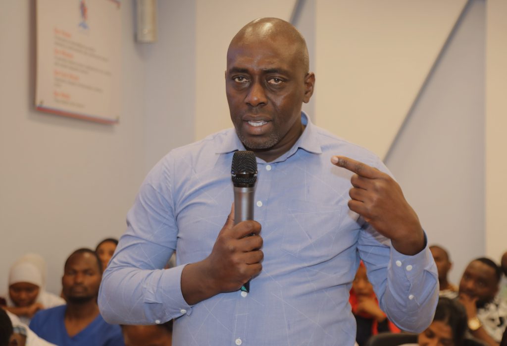Daktari bingwa wa upasuaji wa moyo na mishipa ya damu wa Taasisi ya Moyo Jakaya Kikwete (JKCI) Bashir Nyangasa akichangia mada wakati wa kikao cha Mkurugenzi Mtendaji wa Taasisi hiyo na wafanyakazi kutoa taarifa ya utendaji kazi kwa kipindi cha miezi mitatu ya Julai hadi Oktoba 2023 kilichofanyika leo katika ukumbi wa Taasisi hiyo iliyopo jijini Dar es Salaam.