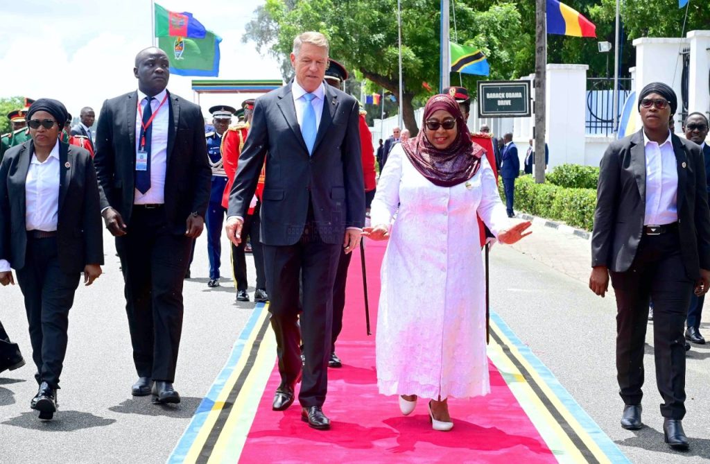 Rais wa Jamhuri ya Muungano wa Tanzania Mhe. Samia Suluhu Hassan akiwa na Mgeni wake Rais wa Romania Mhe. Klaus Iohannis Ikulu Jijini Dar es Salaam wakati wa hafla ya kumuaga baada ya kukamilisha ziara yake nchini Tanzania tarehe 19 Novemba 2023
