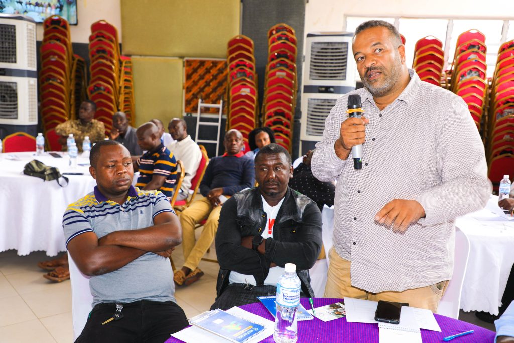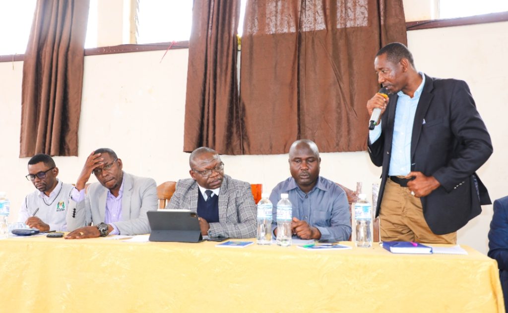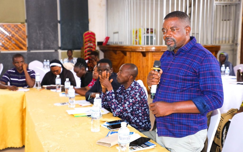 Kiongozi wa Wasafirishaji Mkoa wa Kigoma, Bw. Soud Ahmad, akieleza kuhusu maboresho ya kodi kwenye sekta ya Usafirishaji kwa mwaka 2024/25, wakati wa Kongamano la kukusanya maoni ya Kodi Kikanda linalofanywa na Wizara ya Fedha na wadau wengine, mkoani Kigoma.