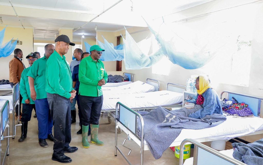 MAKAMU Mwenyekiti wa Chama Cha Mapinduzi (CCM) Tanzania Bara, Abdulrahman Kinana, Akitoa pole kwa baadhi ya Majeruhi Katika Hospitali ya Wilaya hiyo (Tumaini) iliyopo Katesh, alipowatembelea waathirika wa mafuriko hayo katika baadhi ya vijiji vya Wilaya ya Hanang.(Picha na Fahadi Siraji)
