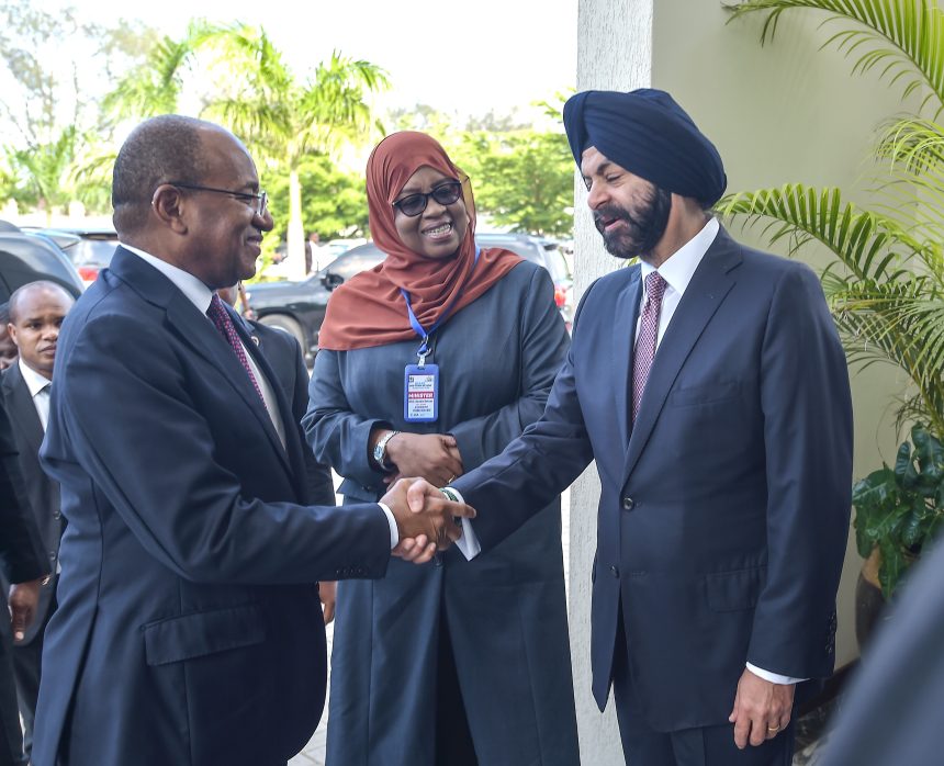 RAIS wa Zanzibar na Mwenyekiti wa Baraza la Mapinduzi Mhe.Dk.Hussein Ali Mwinyi akisalimiana na Rais wa Benki ya Dunia Mhe.Ajay Banga, alipowasili katika viwanja vya Hoteli ya Golden Tulip Uwanja wa Ndege Kiembesamaki Wilaya ya Magharibi “B” Unguja Jijini Zanzibar leo 6-12-2023, kwa ajili ya ufunguzi wa Mkutano wa Kimataifa wa Tathimini ya Muda wakati wa Mzunguko wa 20 wa Mapitio ya Benki ya Dunia (IDA20) na (kushoto kwa Rais ) Waziri wa Nchi Ofisi ya Rais Fedha na Mipango Zanzibar Mhe.Dkt. Saada Mkuya Salum.