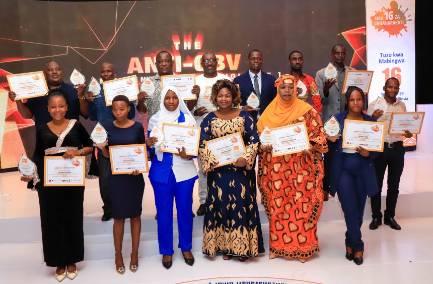 Tuzo kwa Mabingwa 16 Wanaopinga Ukatili wa Kijinsia zimekabidhiwa leo Alhamisi Desemba 7,2023 jijini Dar es salaam  na mabalozi wa nchi mbalimbali pamoja na Wakurugenzi wa LSF na Care Tanzania (Lulu Ng’wanakilala na Prudence Masako) ikiwa ni sehemu ya Maadhimisho ya Siku 16 za Uanaharakati dhidi ya kupinga Ukatili wa Kijinsia 2023 yenye kauli mbiu ‘Wekeza kuzuia ukatili wa kijinsia’.