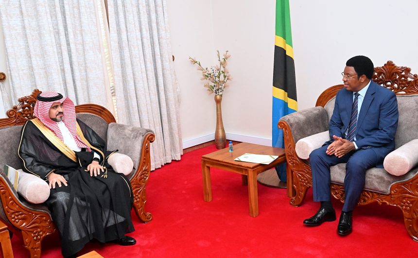 Waziri Mkuu, Kassim Majaliwa akimkabidhi zawadi ya picha Balozi wa Saudi Arabia nchini, Yahya Ahmed Okeish baada ya mazungumzo yao, ofisini kwa Waziri Mkuu, Mlimwa jijini Dodoma, Disemba 13, 2023. (Picha na Ofisi ya Waziri Mkuu)