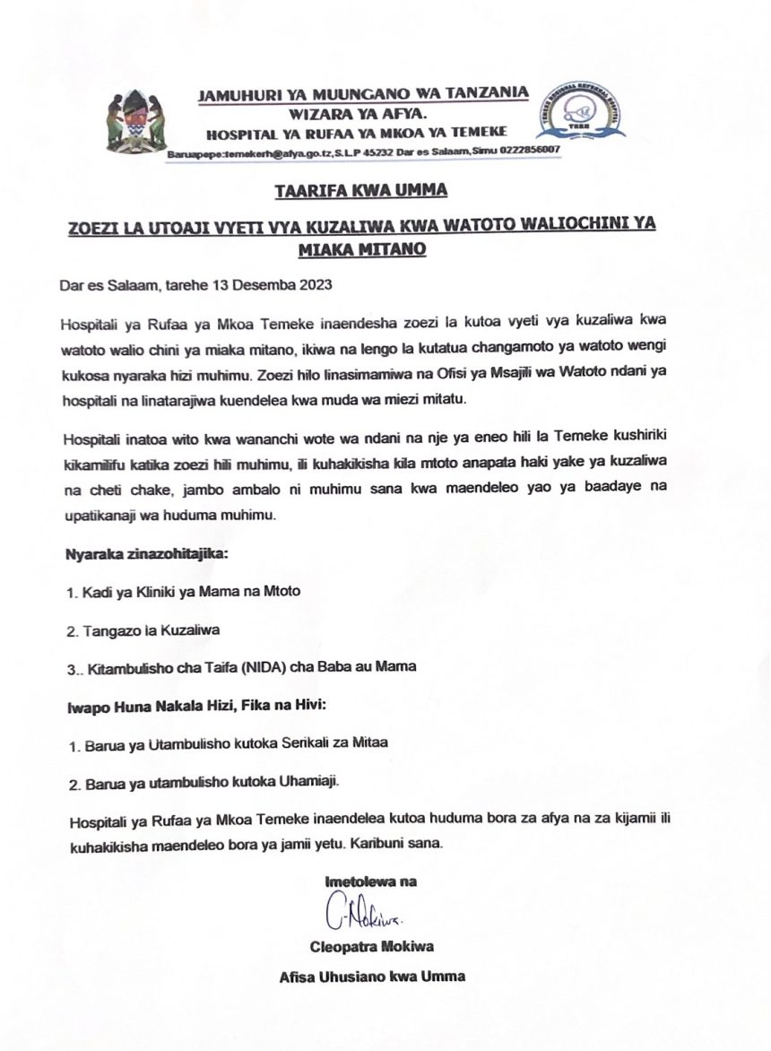 Msajili wa watoto akipokea taarifa kutoka kwa baadhi ya wananchi waliofika Hospitali ya Rufaa ya Mkoa Temeke kwaajili ya kupata cheti cha kuzaliwa.