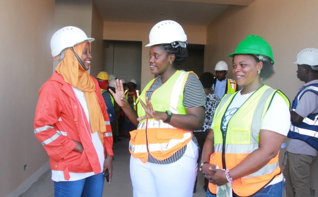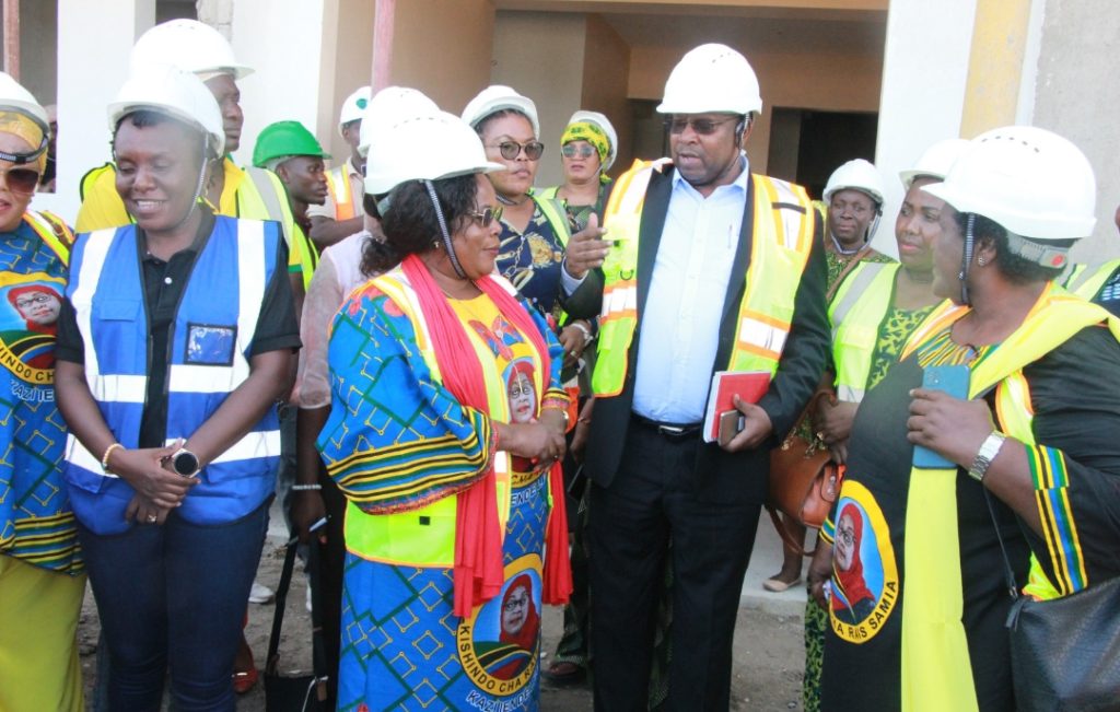 Mbunge wa Viti Maalum(CCM) Mkoa wa Dar es Salaam Mh.Janeth Masaburi akipata maelezo ya Mradi wa Samia Housing Scheme kutoka kwa mhandisi wa mradi huo Grace Musita alipofanya ziara ya kukagua maendeleo ya ujenzi huo Disemba.
