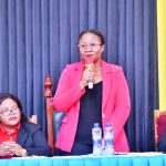 Mbunge wa Viti Maalum(CCM) Mkoa wa Dar es Salaam Mh.Janeth Masaburi akizungumza wakati alipotembelea Mradi wa Samia Housing Scheme ili kukagua maendeleo ya ujenzi huo Disemba 14, 2023, Kushoto ni Meneja Mawasiliano wa NHC Bw. Muungano Saguya.