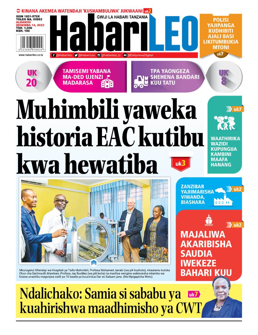 MagazetiPITIA VICHWA VYA HABARI KATIKA MAGAZETI YA LEO DESEMBA 14,2023 Last updated: 2023/12/14 at 1:37 AM Alex Sonna 2 years ago Share SHARE Alex Sonna December 14, 2023 December 14, 2023 Share this Article Facebook Twitter Email Print Previous Article RAIS SAMIA NI MFANO WA KUIGWA BARANI AFRIKA Next Article RAIS DKT. SAMIA AFANYA UTEUZI WA VIONGOZI NA KUWAHAMISHA WENGINE
