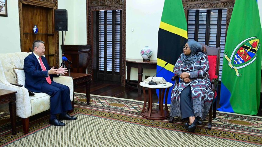 Rais wa Jamhuri ya Muungano wa Tanzania Mhe. Samia Suluhu Hassan akiwa kwenye mazungumzo na Balozi Xia Huang Mjumbe Maalum wa Katibu Mkuu wa Umoja wa Mataifa katika Ukanda wa Nchi za Maziwa Makuu mara baada ya kuwasili Ikulu Jijini Dar es Salaam tarehe 16 Desemba, 2023.