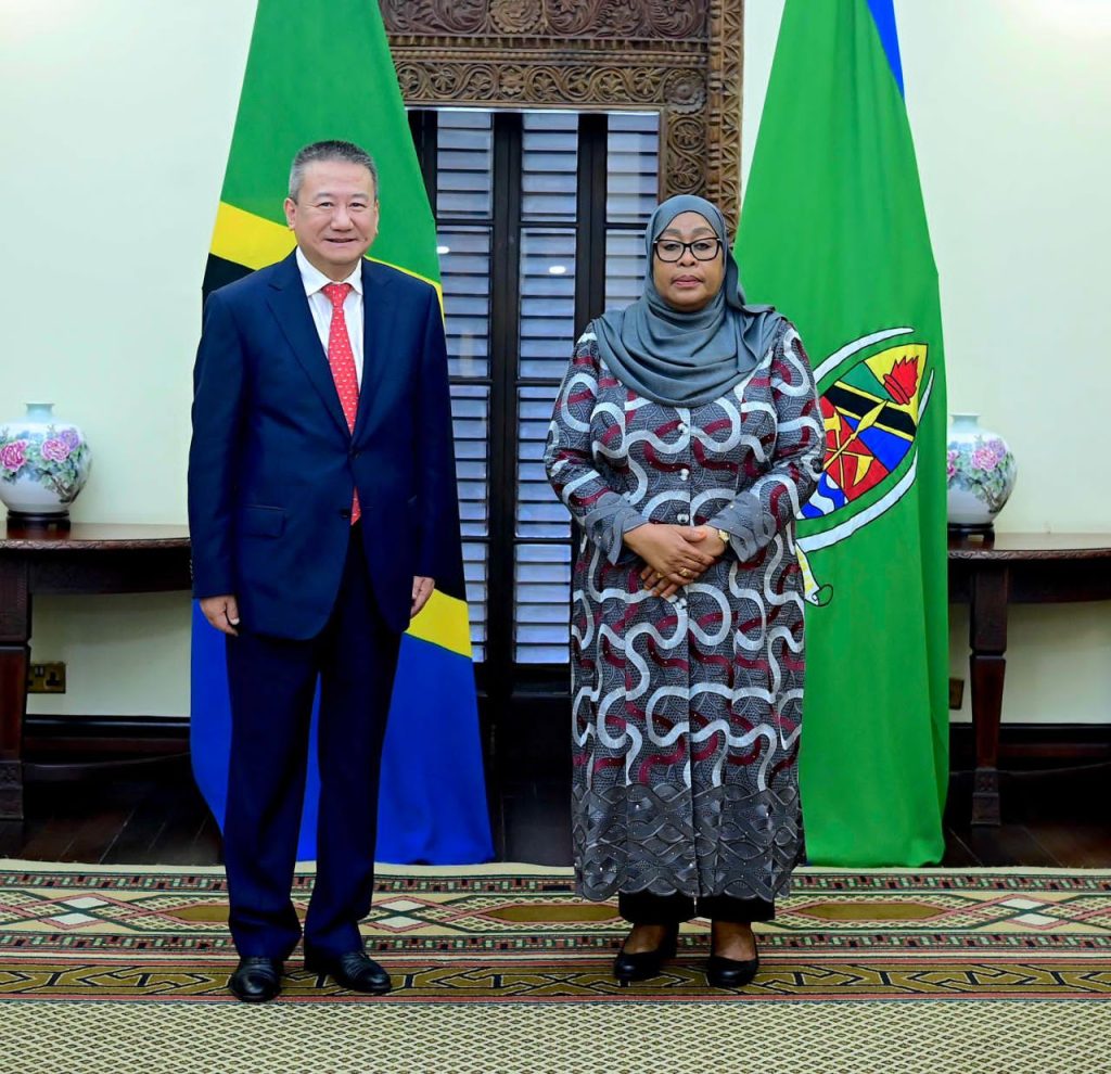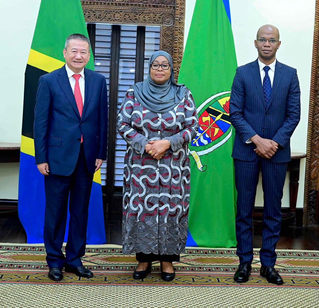Rais wa Jamhuri ya Muungano wa Tanzania Mhe. Samia Suluhu Hassan akiwa kwenye picha ya pamoja na Balozi Xia Huang Mjumbe Maalum wa Katibu Mkuu wa Umoja wa Mataifa katika Ukanda wa Nchi za Maziwa Makuu mara baada ya mazungumzo yao Ikulu Jijini Dar es Salaam tarehe 16 Desemba, 2023.
