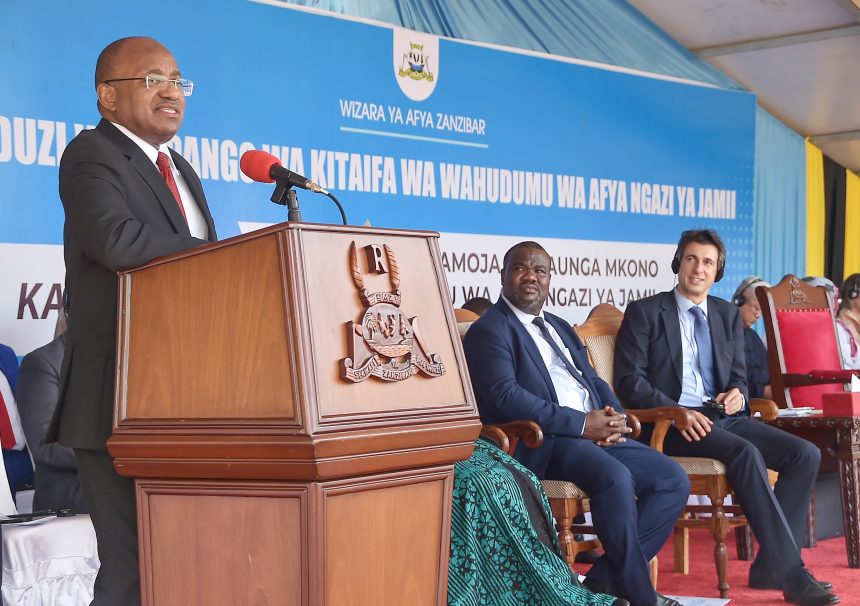 RAIS wa Zanzibar na Mwenyekiti wa Baraza la Mapinduzi Mhe.Dk.Hussein Ali Mwinyi akizindua Mpango wa Kitaifa wa Wahudumu wa Afya Ngazi ya Jamii Zanzibar, uzinduzi huo uliofanyika leo 16-12-2023 katika viwanja vya Maisara Suleiman Wilaya ya Mjini Unguja Jijini Zanzibar.(Picha na Ikulu)