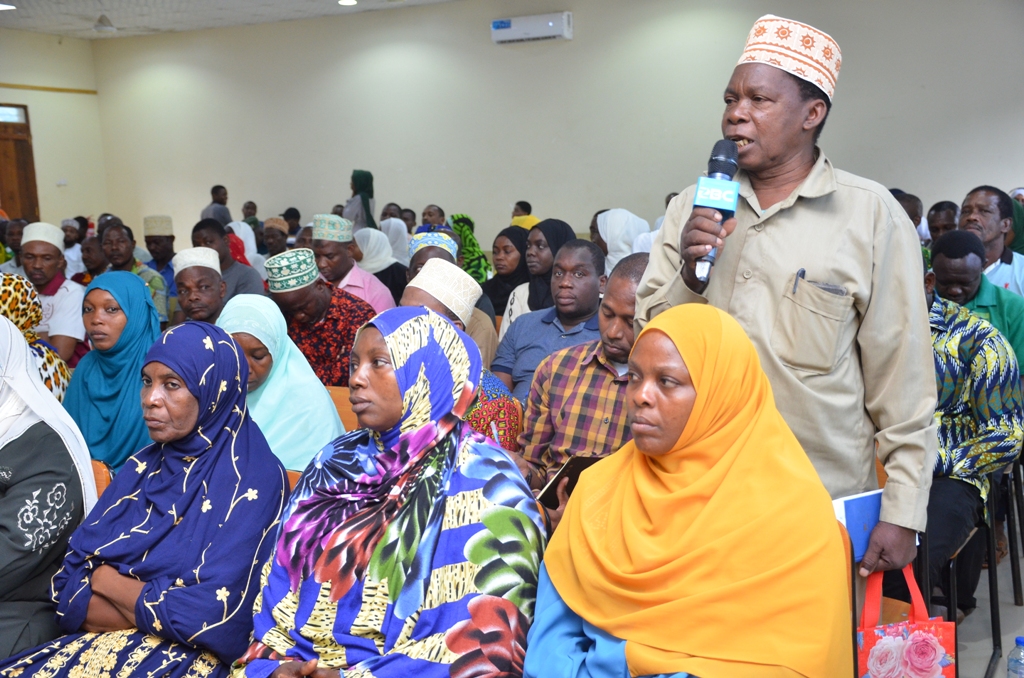 Mohammed Makame Juma mkaazi wa Potoa akichangia wakati wa majadiliano yalioangazia fursa za mkoa wa kaskazini unguja na namna ya kuzifiki, huko ukumbi wa Mitihani Bumbwini Kaskazini “B”.