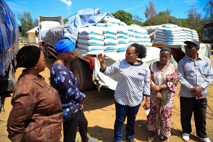 Awali Mkuu wa Wilaya ya Shinyanga Mhe. Johari Samizi, (kushoto) na Mkuu wa Wilaya ya Kahama Mhe. Mboni Mhita wakikagua mzigo walioleta Hanang’