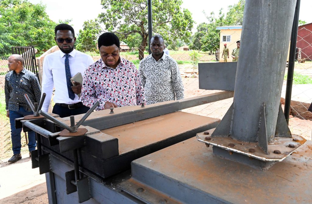 Waziri Mkuu Kassim Majaliwa ambaye pia ni Mbunge wa Jimbo la Ruangwa akiangalia kichomea taka kwenye Zahanati ya Chinongwe, Ruangwa Mkoani Lindi. , Desemba 29.2023. (Picha na Ofisi ya Waziri Mkuu)