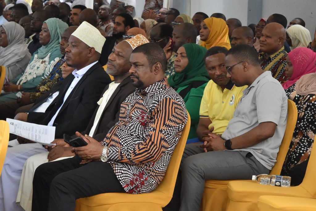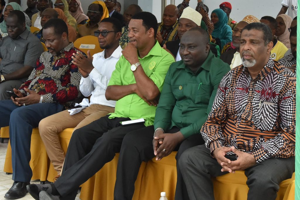 Viongozi mbali mbali waliohudhuria katika sherehe za Ufunguzi rasmi wa Viwanja vya Matumbaku Sports Komplex Miembeni ,Wilaya ya Mjini Mkoa wa Mjini Magharibi leo katika maadhimisho ya shamra shamra za miaka 60 ya Mapinduzi Matukufu ya Zanziba,mgeni rasmi alikuwa Rais wa Zanzibar na Mwenyekiti wa Baraza la Mapinduzi Dk.Hussein Ali Mwinyi .[Picha na Ikulu] 30/12/2023.