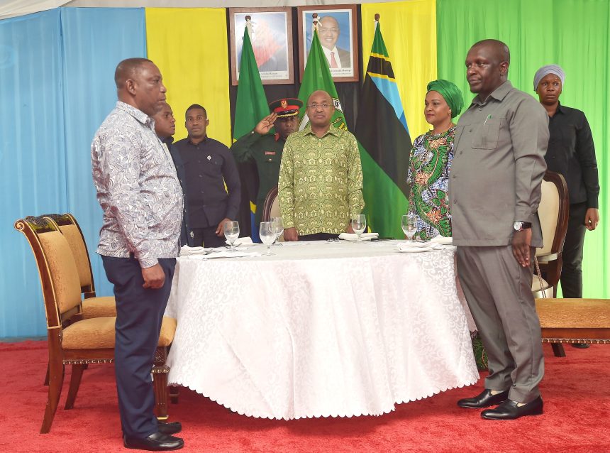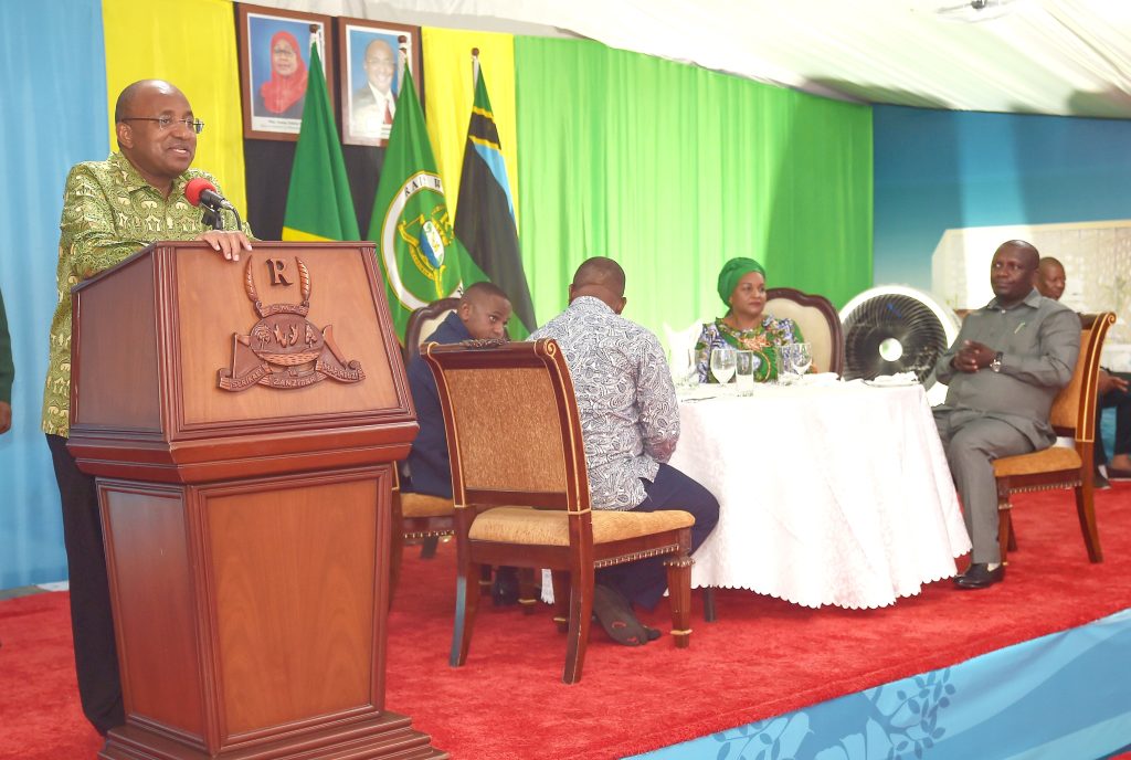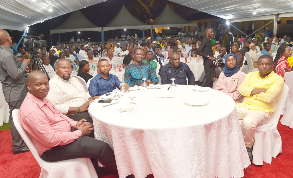 WAZIRI wa Nchi Ofisi ya Rais Ikulu Zanzibar Mhe. Jamali Kassim Ali akiwa na Viongozi wa Jumuiya ya Umoja wa Vijana wa Chama Cha Mapinduzi (UVCCM) wakimsikiliza Makamu Mwenyekiti wa Chama Cha Mapinduzi (CCM) Zanzibar, ambae pia ni Rais wa Zanzibar na Mwenyekiti wa Baraza la Mapinduzi. Mhe.Dk.Hussein Ali Mwinyi (hayupo pichani) akizungumza na Viongozi wa Jumuiya ya Umoja wa Vijana wa Chama Cha Mapinduzi (UVCCM) katika viwanja vya Ikulu Jijini Zanzibar jana usiku 9-1-2024, katika dhifa maalum ya chakula cha usiku kilichofanyika katika viwanja vya Ikulu Jijini Zanzibar.(Picha na Ikulu)