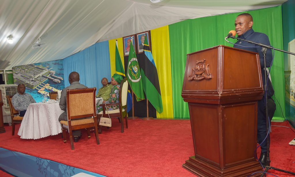 MWENYEKITI wa Jumuiya ya Umoja wa Vijana wa Chama Cha Mapinduzi (UVCCM) Taifa Ndg. Mohammed Ali Kawaida akizungumza kabla ya kumkaribisha Makamu Mwenyekiti wa Chama Cha Mapinduzi (CCM) Zanzibar ambae pia ni Rais wa Zanzibar na Mwenyekiti wa Baraza la Mapinduzi Mhe.Dk.Hussein Ali Mwinyi kuzungumza na Vijana wa (UVCCM) katika viwanja vya Ikulu Jijini Zanzibar, wakati wa hafla maalum aliyowaandalia jana usiku 9-1-2024.(Picha na Ikulu)