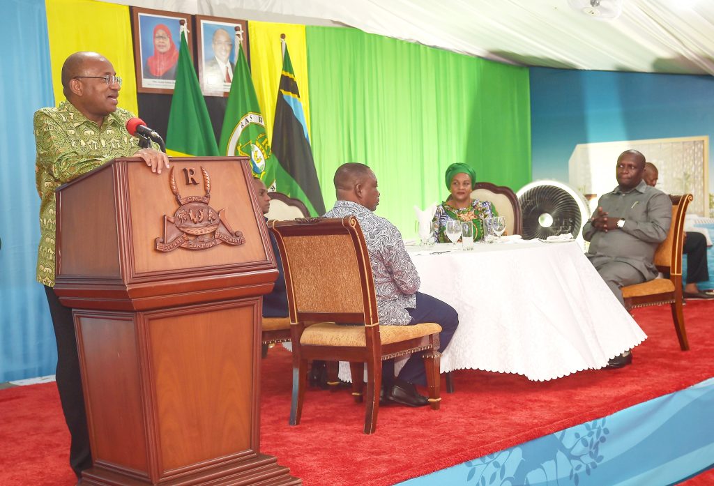 WAZIRI wa Nchi Ofisi ya Rais Ikulu Zanzibar Mhe. Jamali Kassim Ali akiwa na Viongozi wa Jumuiya ya Umoja wa Vijana wa Chama Cha Mapinduzi (UVCCM) wakimsikiliza Makamu Mwenyekiti wa Chama Cha Mapinduzi (CCM) Zanzibar, ambae pia ni Rais wa Zanzibar na Mwenyekiti wa Baraza la Mapinduzi. Mhe.Dk.Hussein Ali Mwinyi (hayupo pichani) akizungumza na Viongozi wa Jumuiya ya Umoja wa Vijana wa Chama Cha Mapinduzi (UVCCM) katika viwanja vya Ikulu Jijini Zanzibar jana usiku 9-1-2024, katika dhifa maalum ya chakula cha usiku kilichofanyika katika viwanja vya Ikulu Jijini Zanzibar.(Picha na Ikulu)