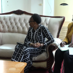 Rais wa Jamhuri ya Muungano wa Tanzania Mhe. Samia Suluhu Hassan akizungumza na Mkunga mbobezi wa Hospitali ya Rufaa ya Mkoa, Mjini Magharibi Lumumba Zanzibar Bi. Khadija Salum Said kuhusu huduma za Wanawake Wajawazito zinazotolewa kwenye Hospitali hiyo mara baada ya uzinduzi tarehe 10 Januari, 2024.