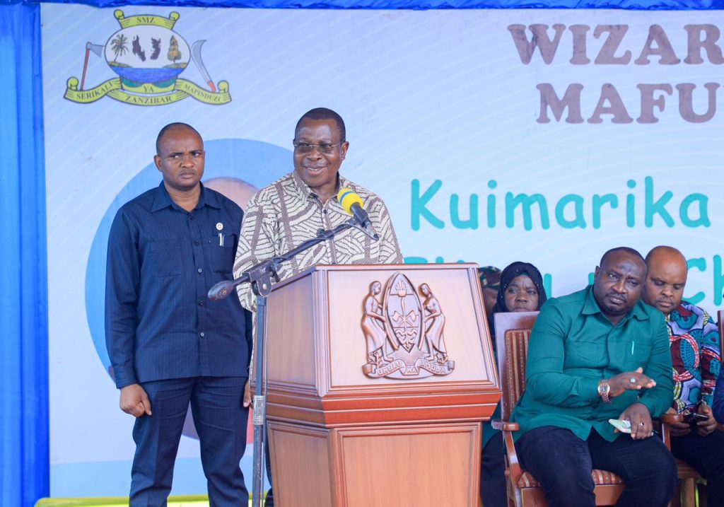 Makamu wa Rais wa Jamhuri ya Muungano wa Tanzania Mhe. Dkt. Philip Mpango akihutubia wakati wa hafla ya ufunguzi wa Skuli ya Msingi ya Elimu Mjumuisho Jendele iliyopo Wilaya ya Kati, Unguja ikiwa ni shamrashamra za Maadhimisho ya Miaka 60 ya Mapinduzi Matukufu ya Zanzibar. Tarehe 11 Januari 2024.