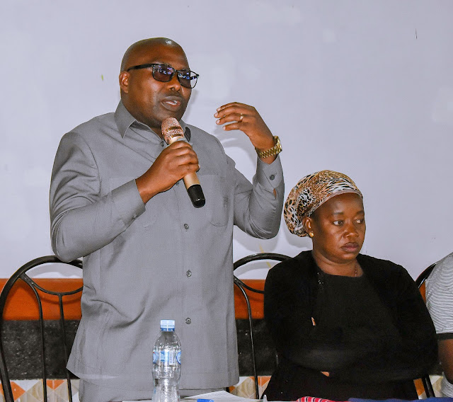 Mkurugenzi wa Uwezeshaji Kiuchumi na Maendeleo ya Sekta Binafsi kutoka Ofisi ya Waziri Mkuu Sera, Bunge na Uratibu Bw. Condrad Millinga akizungumza wakati wa kikao cha mafunzo cha wafanyabisha na wawakilishi kutoka kwenye mabenki na Taasisi za fedha kilichofanyika Wilayani Hanang’ Tarehe 11 Januari 2024. Aliyekaa ni Mkuu wa Wilaya ya Hanang’ Mhe. Janeth Mayanja.