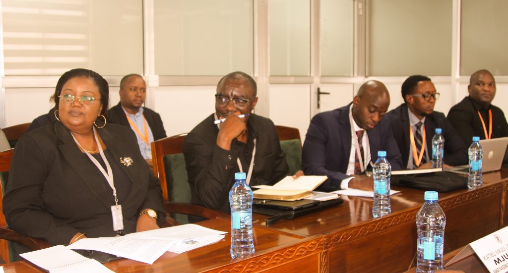 Maafisa wa Ofisi ya Rais, Menejimenti ya Utumishi wa Umma na Utawala Bora, Wakala ya Ndege za Serikali, Mamlaka ya Serikali Mtandao na Sekretarieti ya Ajira katika Utumishi wa Umma wakimsikiliza Mwenyekiti wa Kamati ya Kudumu ya Bunge ya Utawala Katiba na Sheria, Mhe. Dkt. Joseph Mhagama (hayupo pichani) wakati wa kikao cha kamati na ofisi hiyo kilichofanyika katika ofisi za Bunge jijini Dodoma