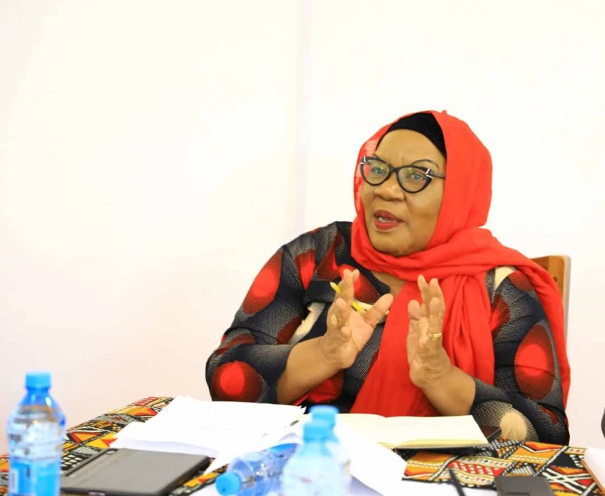 Mwenyekiti wa Kamati ya kudumu ya Bunge ya Ustawi na Maendeleo ya Jamii, Mhe Mhe. Fatuma Toufiq (kushoto) akieleza jambo wakati wa kikao cha kupokea taarifa ya Utekelezaji wa Mradi wa ukarabati na ujenzi wa Vyuo vya Ufundi Stadi na Marekebisho kwa Watu wenye Ulemavu tarehe 16 Januari, 2024 Bungeni jijini Dodoma.