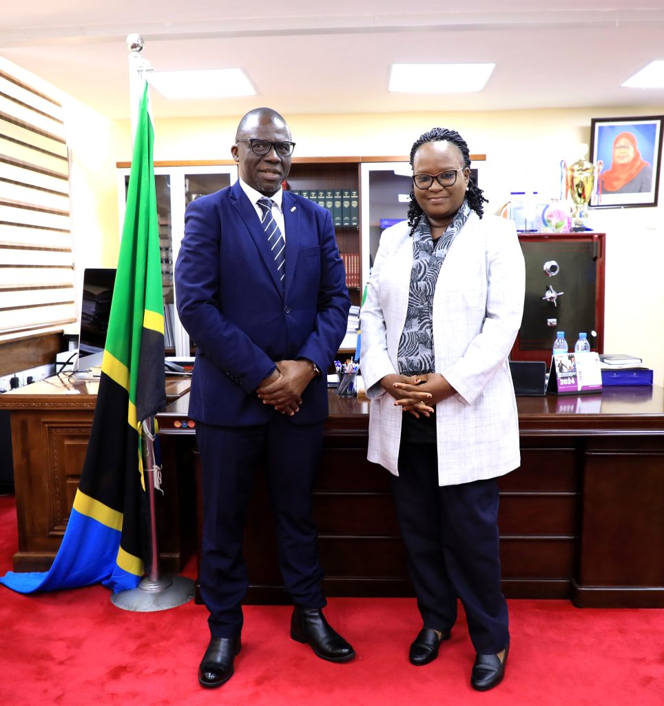 Katibu wa Bunge, Ndg. Nenelwa Mwihambi, ndc akiwa katika picha ya pamoja na Mkurugenzi Mtendaji wa Bodi ya Mikopo ya Wanafunzi wa Elimu ya Juu (HESLB), Ndg. Abdul-Razaq Badru, alipomtembelea leo tarehe 18 Januari, 2024 ofisini kwake Bungeni Jijini Dodoma.(PICHA NA OFISI YA BUNGE)