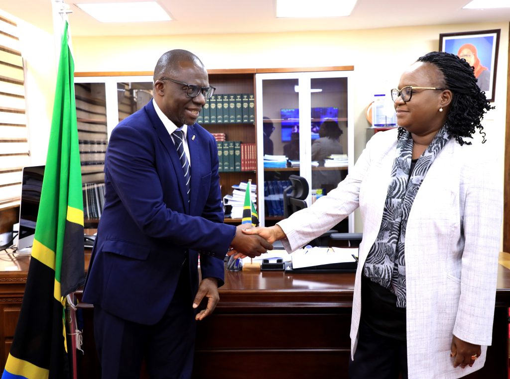 Katibu wa Bunge, Ndg. Nenelwa Mwihambi, ndc akiagana na Mkurugenzi Mtendaji wa Bodi ya Mikopo ya Wanafunzi wa Elimu ya Juu (HESLB), Ndg. Abdul-Razaq Badru baada ya mazungumzo yaliyofanyika leo tarehe 18 Januari, 2024 ofisini kwake Bungeni Jijini Dodoma.