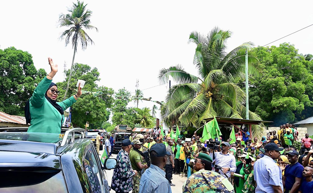 Mwenyekiti wa Chama cha Mapinduzi CCM na Rais wa Jamhuri ya Muungano wa Tanzania Ndugu. Samia Suluhu Hassan, akisalimiana na kuzungumza na Viongozi na Wanachana wa Chama cha Mapinduzi (CCM) na Wananchi wa Wilaya ya Kusini Unguja katika kijiji cha kitogani na Tunguu mara baada ya kuzindua Uboreshaji wa Tawi la Chama cha Mapinduzi (CCM) Tasani Makunduchi Mkoa wa Kusini Unguja wakati alipokuwa kwenye ziara ya kutembelea na kukagua miradi mbalimbali ya Chama cha Mapinduzi (CCM) tarehe 18 Januari, 2024.