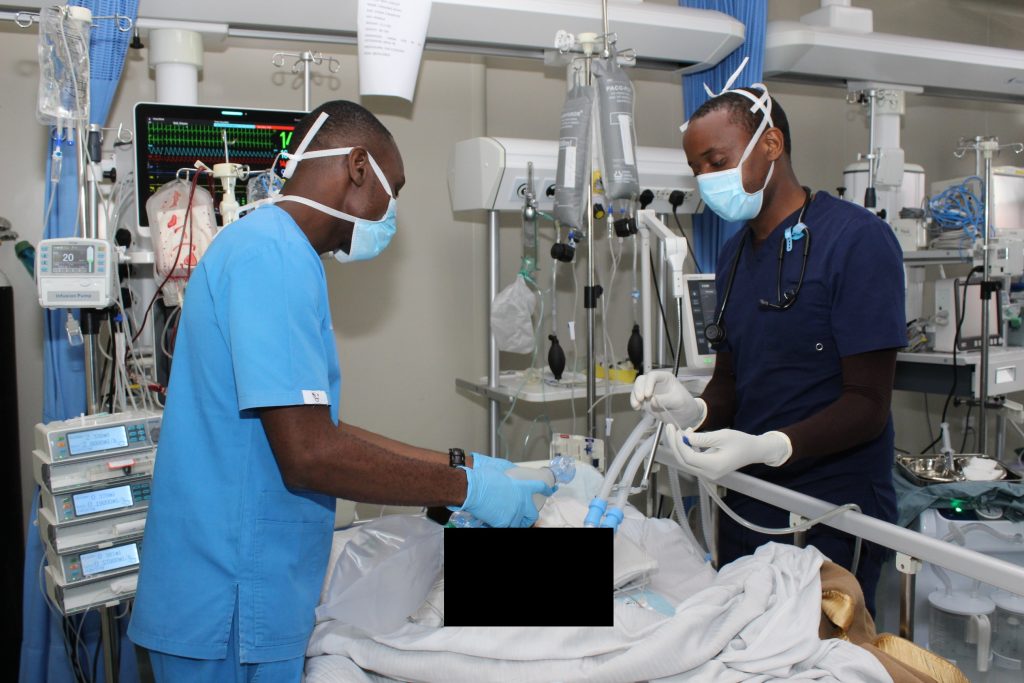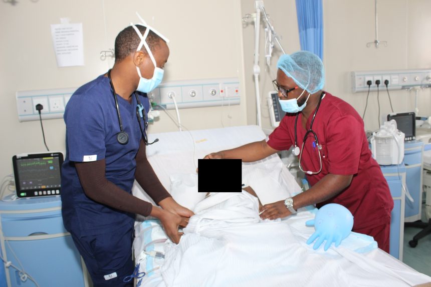 Daktari wa Taasisi ya Moyo Jakaya Kikwete (JKCI) anayefanya kazi katika wodi ya wagonjwa wanaohitaji uangalizi maalumu (ICU) Kelvin Mutta na Afisa muuguzi wa hospitali ya Taifa ya Moyo ya Zambia Grivas Pharaoh