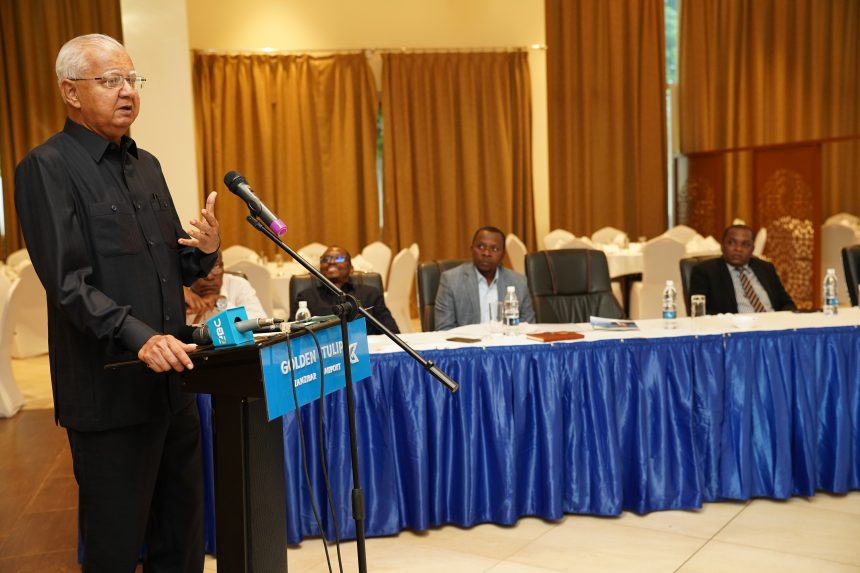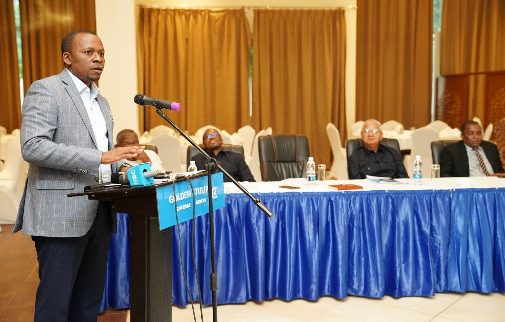 Mwanasheria Mkuu wa Zanzibar Dkt. Mwinyi Talib Haji akiwakaribisha Wadau katika Mkutano wa kujadili Rasimu za Miswada ya Sheria ya Usuluhishi na Sheria ya kuanzisha Kituo cha Usuluhishi wa Migogoro Zanzibar ukumbi wa Golden Tulip Uwanja wa Ndege.
