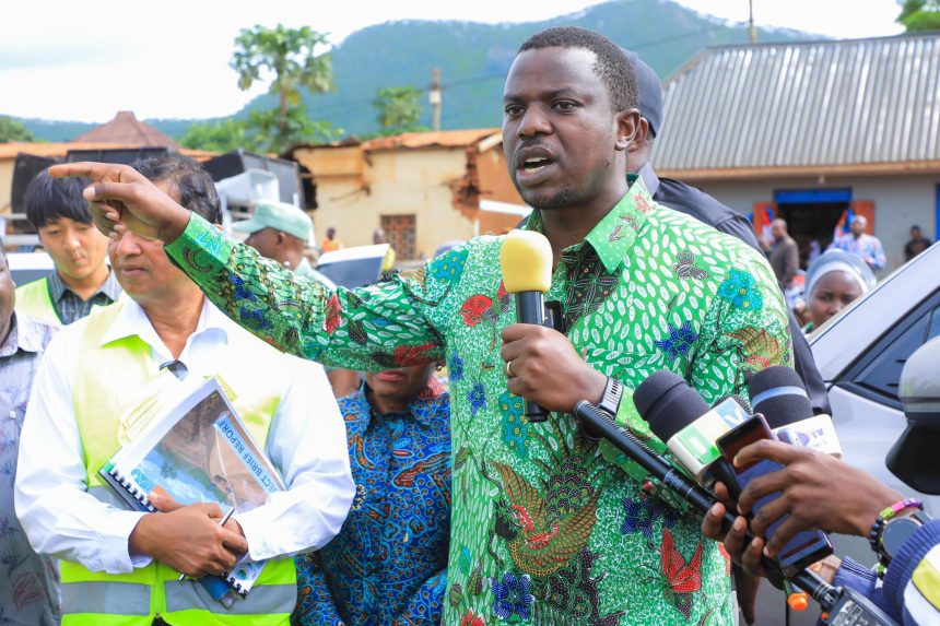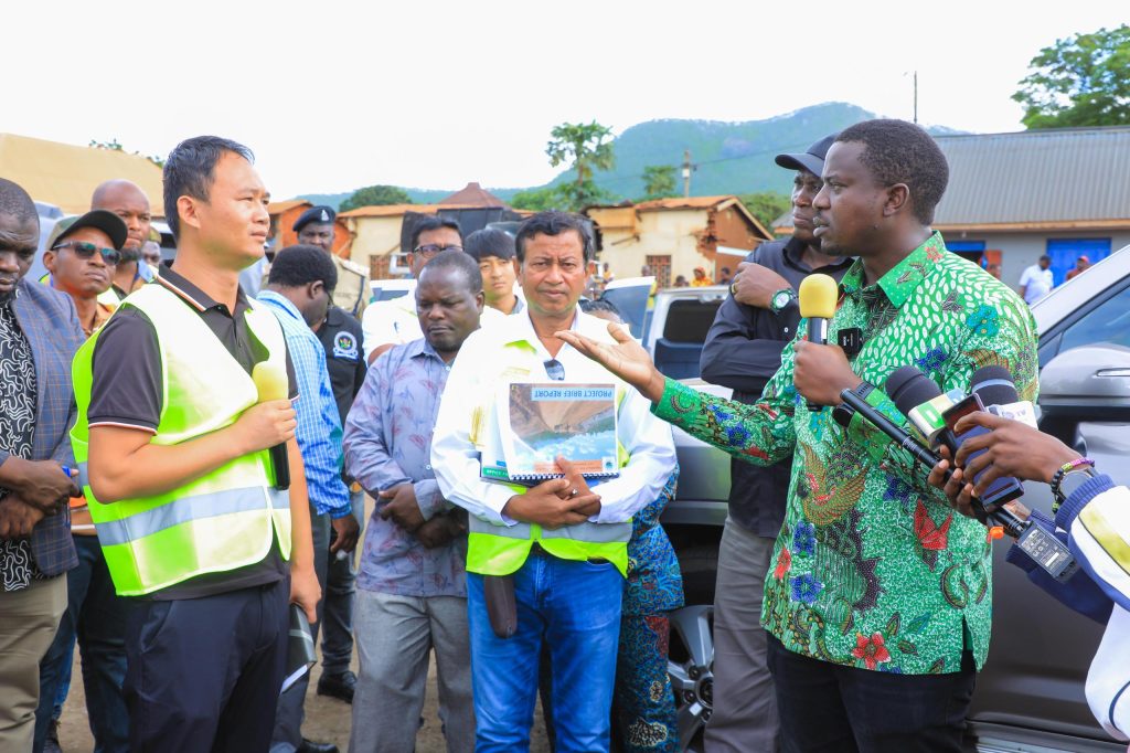 Waziri wa Ujenzi, Innocent Bashungwa, akitoa maelekezo kwa Mkandarasi wa Kampuni ya China Railway Seventh Group anayejenga barabara ya Kitai-Lihuli, sehemu ya Amani Makoro – Ruanda (km 35), Mkoani Ruvuma.