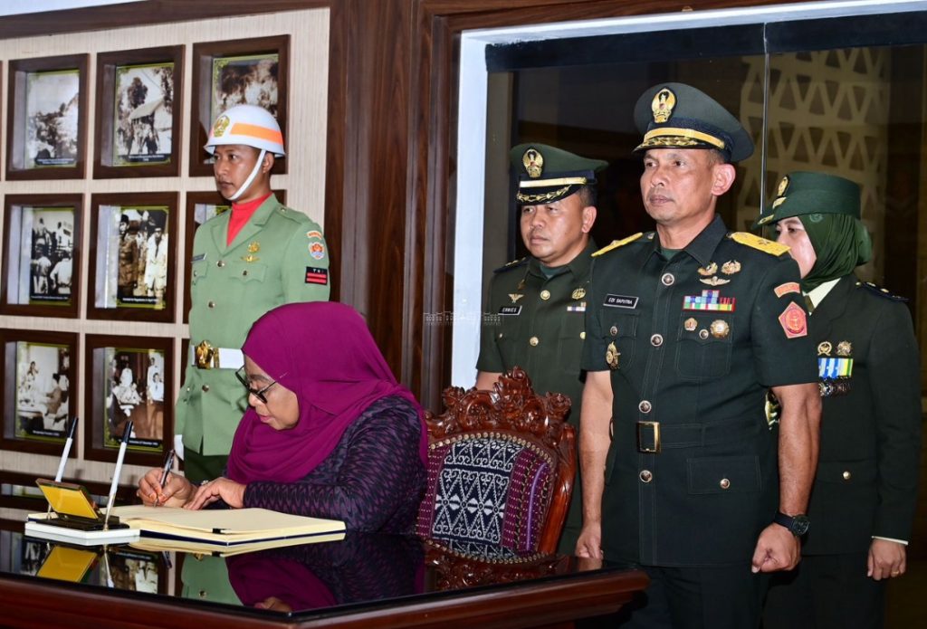 Rais wa Jamhuri ya Muungano wa Tanzania Mhe. Samia Suluhu Hassan akisaini Kitabu cha wageni mashuhuri mara baada ya kuweka shada la maua kwenye mnara wa kumbukumbu ya Makaburi ya Mashujaa ya Kalibata wakati wa ziara yake ya Kitaifa Jakarta nchini Indonesia tarehe 25 Januari,2024.