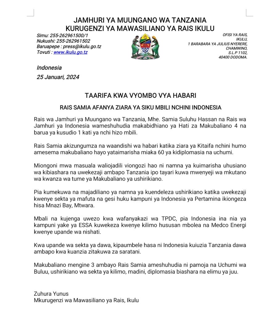 Rais wa Jamhuri ya Muungano wa Tanzania Mhe. Samia Suluhu Hassan akiondoka mara baada ya kuweka shada la maua kwenye mnara wa kumbukumbu ya Makaburi ya Mashujaa ya Kalibata wakati wa ziara yake ya Kitaifa Jakarta nchini Indonesia tarehe 25 Januari,2024.