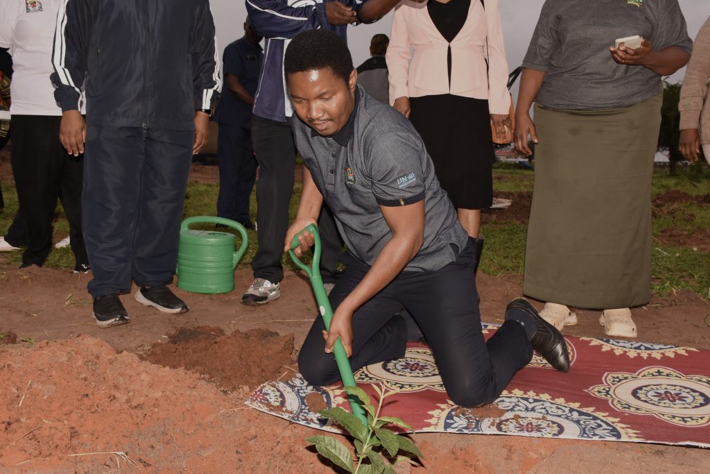 Naibu Katibu Mkuu (Muungano) Ofisi ya Makamu wa Rais Bw. Abdallah Hassan Mitawi akipanda mti katika Shule ya Msingi Dodoma English Medium wakati wa uzinduzi wa zoezi la upandaji miti kuelekea Maadhimisho ya miaka 60 ya Muungano wa Tanganyika na Zanzibar leo Januari 25, 2024.