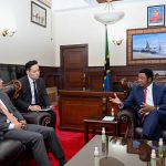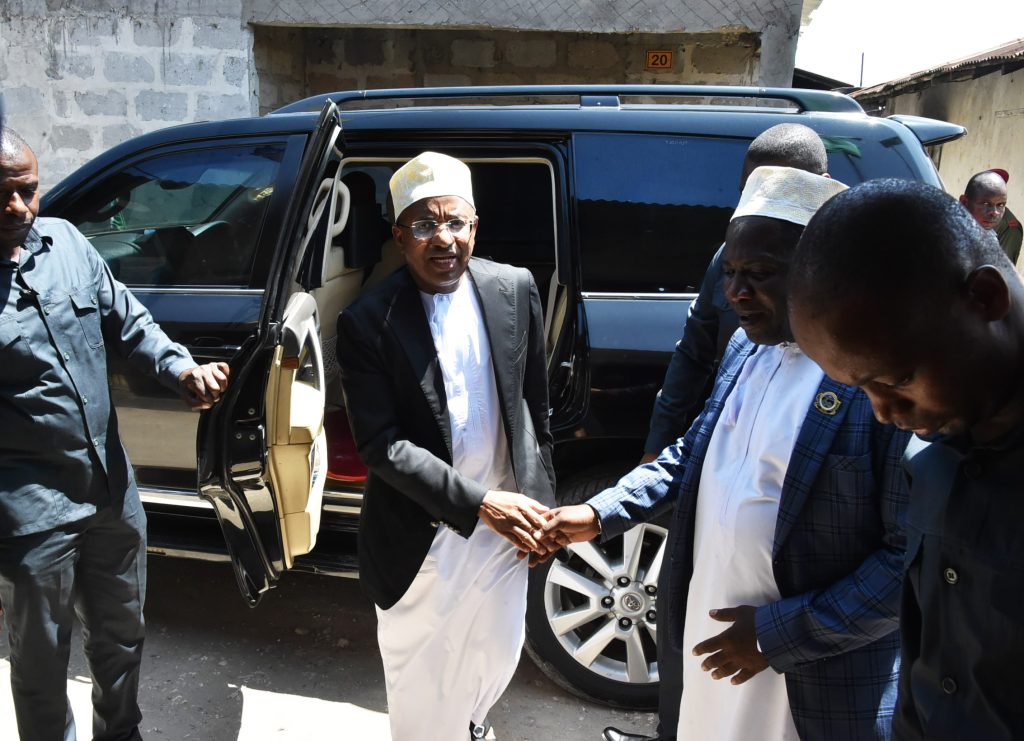 Rais wa Zanzibar na Mwenyekiti wa Baraza la Mapinduzi Alhaj Dk.Hussein Ali Mwinyi (kushoto) akiagana na Viongozi wa Masjid Twauba Mwembemakumbi baada ya kushiriki Swala ua Ijumaa leo ikiwa nikawaida yake kushiriki Ibada katika Misikiti mbali mbali Nchini.[Picha na Ikulu] 26/01/2024.