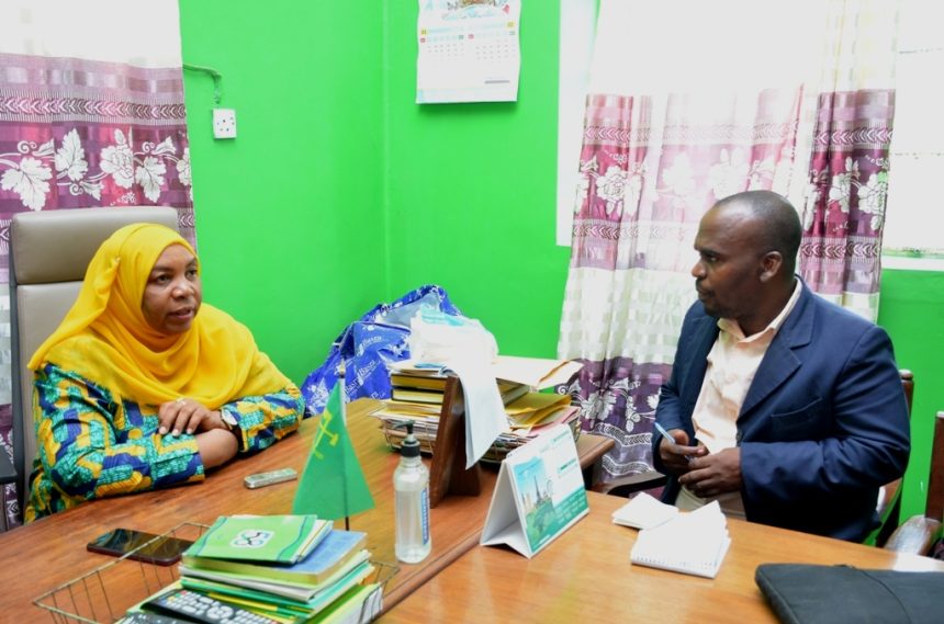 Afisa habari kutoka idara ya habari maelezo Zanzibar Takdir Ali Suweid akizungumza na naibu wa kamati tekelezaji taifa na mjumbe wa kamati ya kupinga vitendo vya udhalilishaji UWT Fatma Sufa kuhusiana na wanavyokabiliana na vitendo vya udhalilishaji, huko Ofisi kuu za CCM Kisiwandui Mjini Unguja. PICHA NA FAUZIA MUSSA –MAELEZO ZANZIBAR.