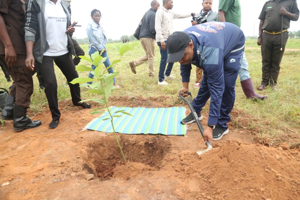 Naibu Katibu Mkuu (Mazingira) Ofisi ya Makamu wa Rais Bw. Abdallah Hassan Mitawi akipanda mti kuelekea Maadhimisho ya Miaka 60 ya Muungano wa Tanganyika na Zanzibar katika zoezi lililofanyika leo Januari 26, 2024 eneo la Hospitali Kuu ya Kanda ya Kati ya Jeshi la Magereza iliyopo Veyula.