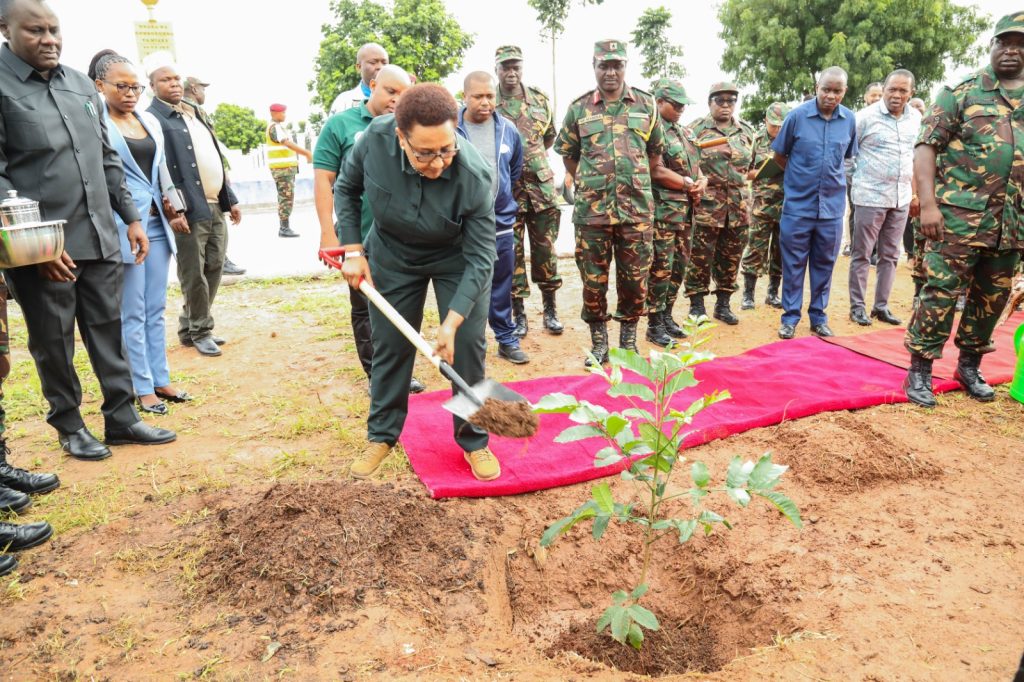 WAZIRI wa Ulinzi na Jeshi la kujenga Taifa (JKT) Mhe. Dkt.Stergomena Tax akipanda mti wakati wa zoezi la upandaji miti kuelekea Maadhimisho ya miaka 60 ya Muungano wa Tanganyika na Zanzibar katika Makao Makuu ya JKT Wilayani Chamwino Dodoma leo Januari 29,2024.