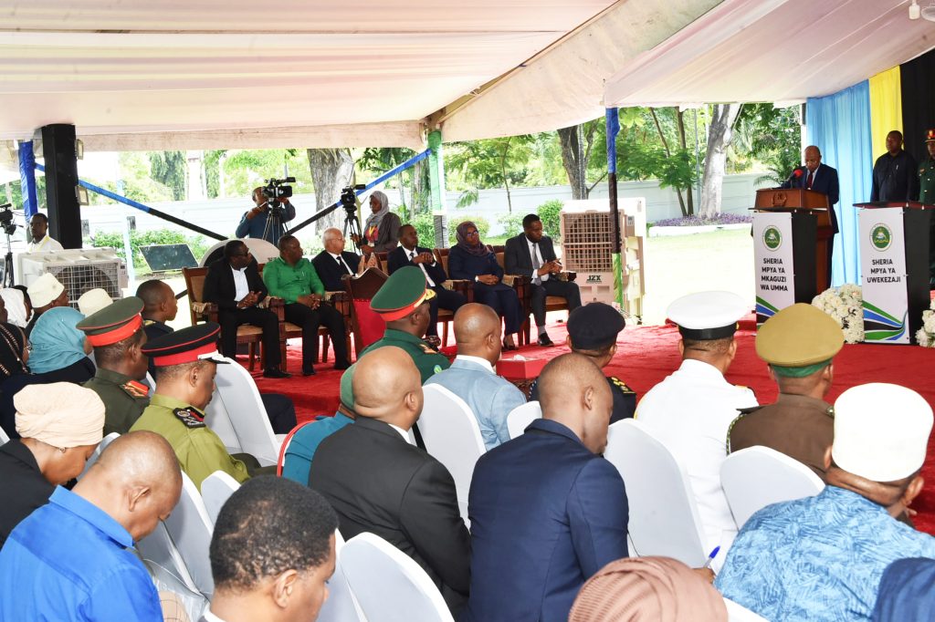 Rais wa Zanzibar na Mwenyekiti wa Baraza la Mapinduzi Mhe.Dk.Hussein Ali Mwinyi (kulia) alipokuwa akizungumza na Viongozi waliohudhuria katika hafla ya Utiaji wa saini Sheria mbali mbali za Serikali ya Mapinduzi Zanzibar mara baada ya utiaji wa Sheria hizo katika hafla iliyofanyika leo viwanja vya Ikulu Jijini Zanzibar. katika hafla iliyofanyika leo viwanja vya Ikulu Jijini Zanzibar, ikiwemo Sheria ya kuweka Masharti ya Mtoaji wa Leseni,Sheria Mpya ya Uwekezaji Zanzibar, Sheria ya Mahkama ya Kadhi na Sheria ya Mkaguzi wa Umma .[Picha na Ikulu] 01/02/2024.